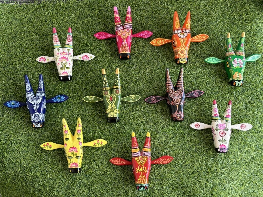 Add a burst of color and culture to your walls with this Handcrafted Colorful Animal Head Wall Décor Set. Inspired by traditional Indian tribal art, each piece is meticulously hand-painted with intricate floral and geometric patterns, making every mask unique in its own way.
