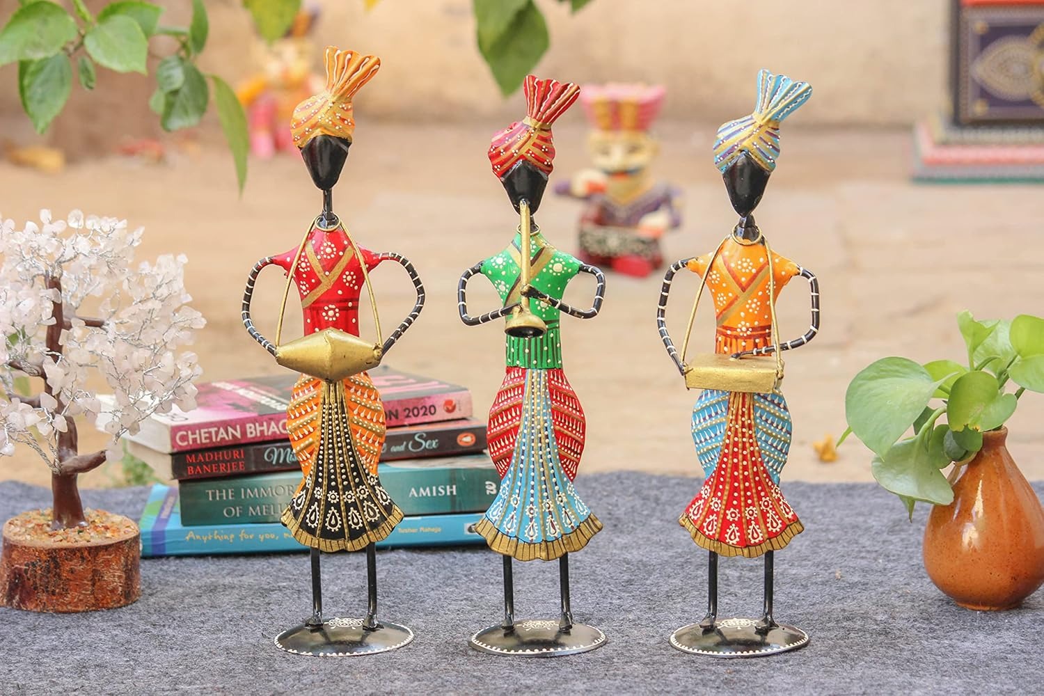 Handcrafted Tribal Musician Figurines – Colorful Rajasthani Folk Art Showpiece Set of 3